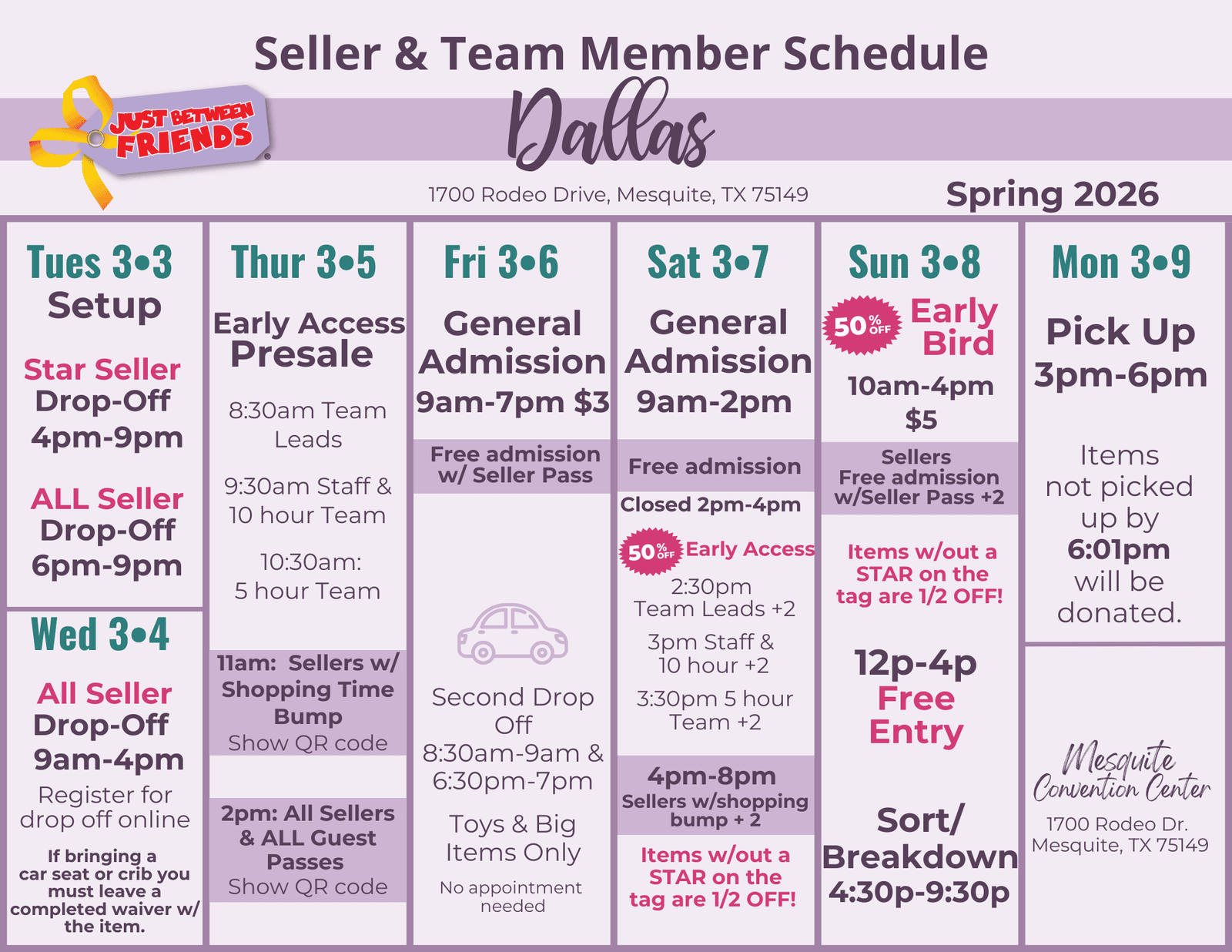 You will Select Your Drop Off Day, Pay Your Seller's Fee and Claim Your Presale Shopping Passes.